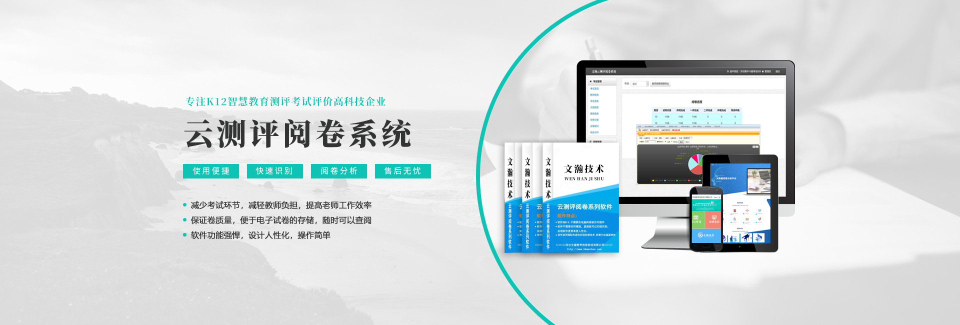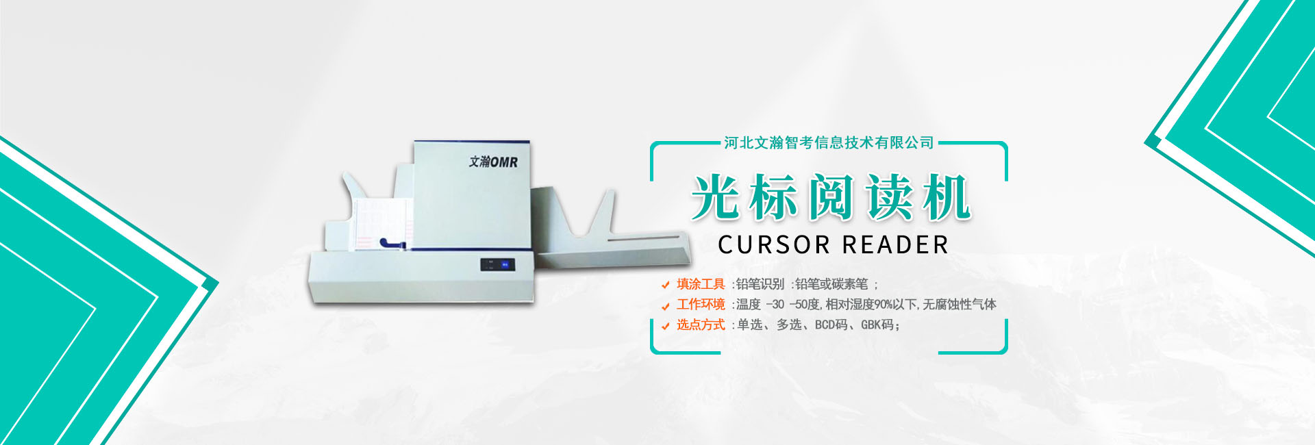 河北文瀚智考信息技術(shù)有限公司是一家專注教育的科技創(chuàng)新公司。本公司主營四大板塊產(chǎn)品:網(wǎng)上閱卷系統(tǒng)、光標閱讀機、答題卡和互動觸控液晶一體機。公司在數(shù)據(jù)處理產(chǎn)品領域(OMR)推出了一系列具有快捷,簡便,實用產(chǎn)品,···